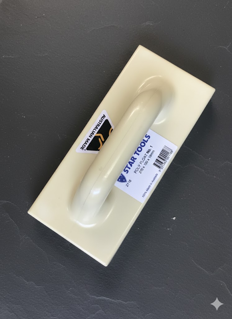 Float Poly Star Tools is a durable, one-piece moulded poly float made from high-impact polymer for strength and long-lasting performance. Designed for render, plaster, and concrete finishing, this float provides smooth, consistent results and is proudly made in Australia for professional reliability.
