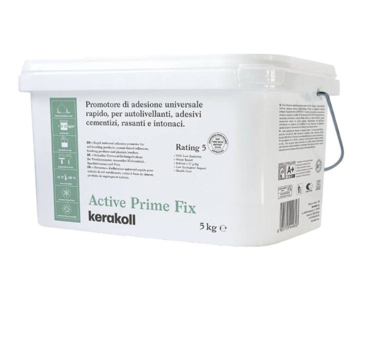 Active Prime Fix is a single-component, water-based adhesion promoter designed for both internal and external use. It’s ideal for self-levelling products, cement-based adhesives, finishing products, and plasters/renders. The active cross-linking in Active Prime Fix ensures total compatibility with both absorbent and non-absorbent substrates, providing maximum adhesion when used with cement-, gypsum-, and mortar-based mineral products.